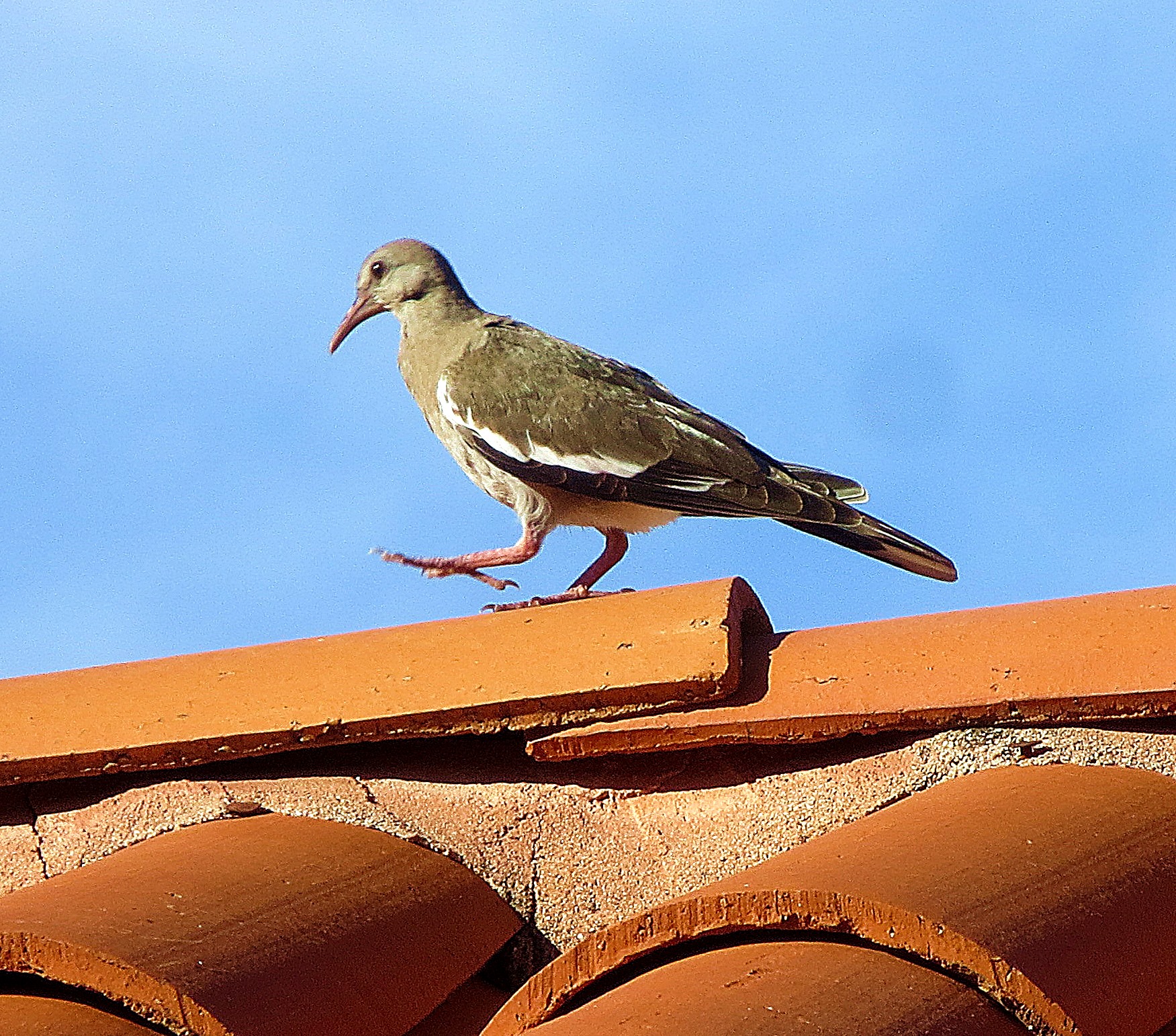 We have the white-wing dove and mourning dove here in Austin. I don’t know whether the invasive one has made it here, but I suspect it has. I found a web page from Texas Parks and Wildlife saying the invasive species has been documented in 134 of Texas’s 254 counties. I don’t know how long ago that was written.