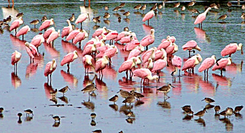 A flock of roseate spoonbills won the color award of the day when I visited Ding Darling National Wildlife Refuge. — Wikimedia photo