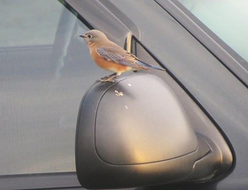 She kept hopping from the rear-view mirror to the edge of the window frame trying to get a better look of herself. She was so engaged in this activity that she wasn’t even chased away when I opened Gypsy Lee’s side window to take her photograph.