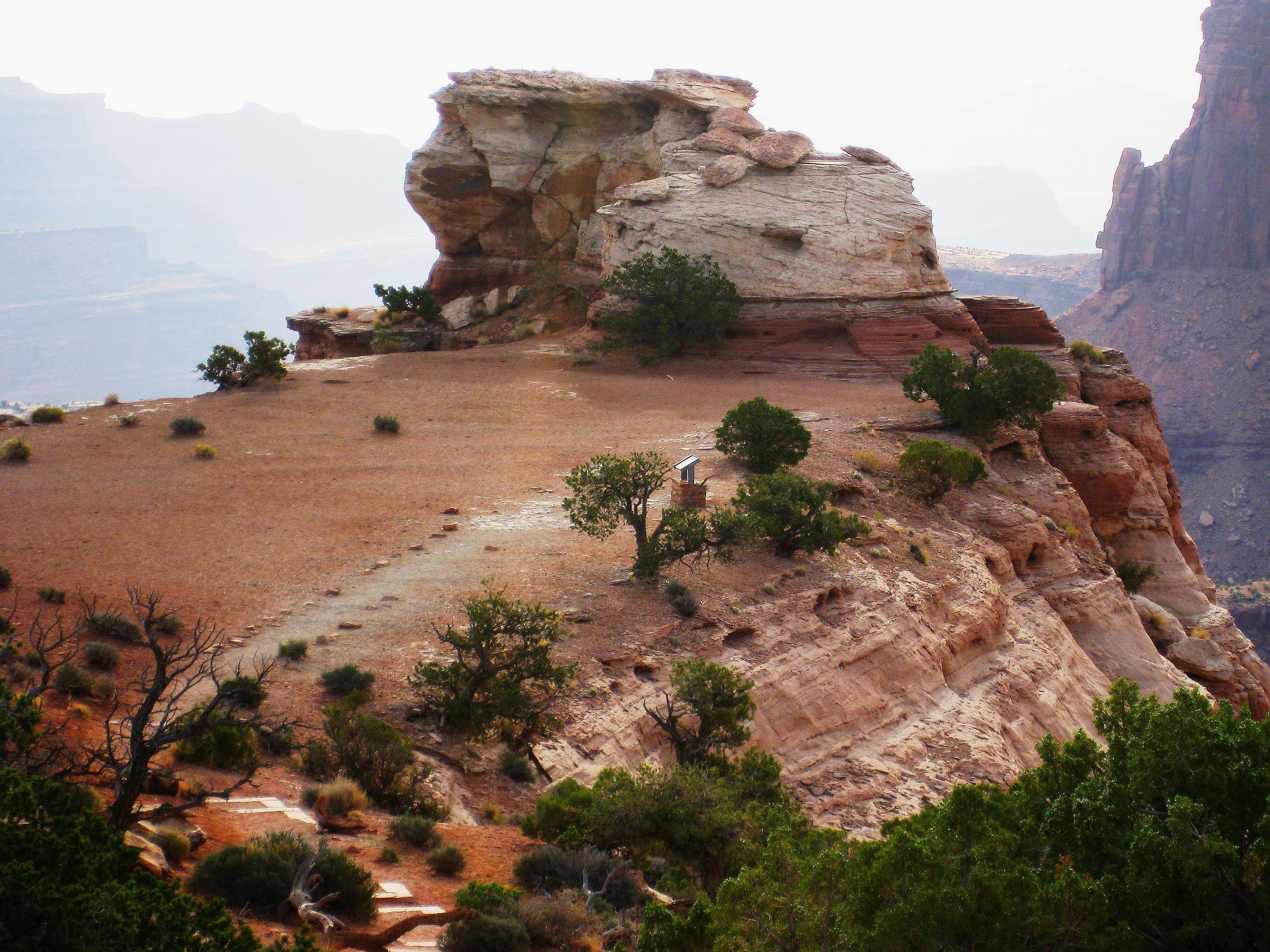 After Price, the highway followed the Book Cliffs, a line of desert mountains east of Highway 6, to Green River, where after a jog on Interstate 79, it joined Highway 191. Just before Moab, I took a detour to the Islands in the Sky section of Canyonlands National Park, where I hiked the half-mile Pothole Trail before continuing on my journey.