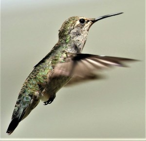 But since he can’t be on guard broad every minute, I also see quite a few broadtail hummingbirds with their rose-red throats and wings that produce a trilling whir when they are flapping. The Anna’s makes a sharp clicking sound instead, which makes the two species easy to tell apart when they’re zipping around. This is especially true if the birds are the less distinctive females.